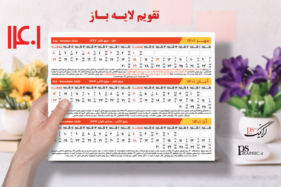 مشخصات تقویم 1401 :