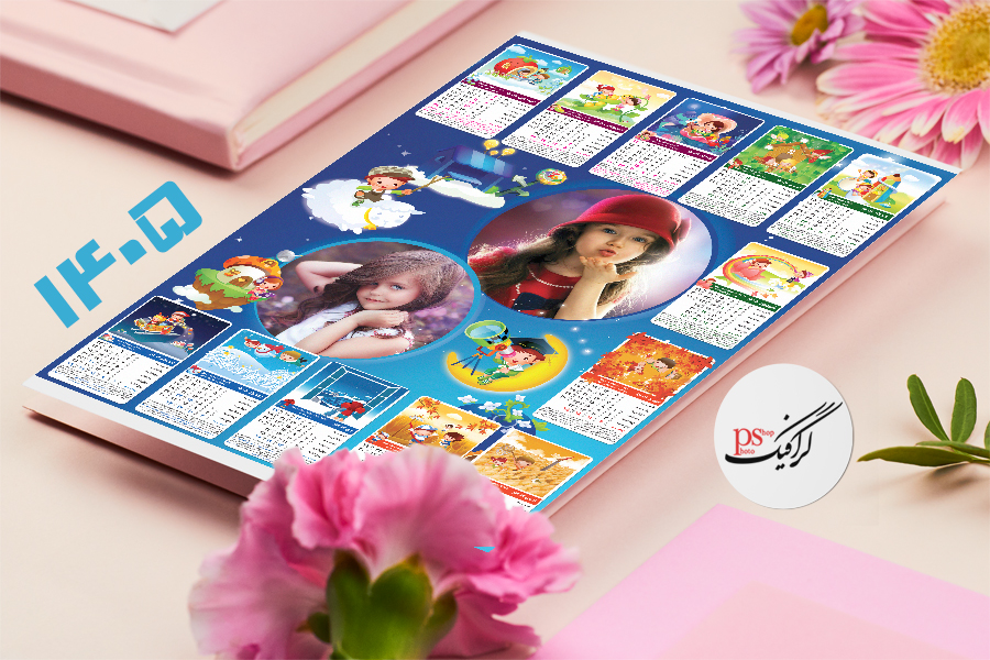تقویم کودکانه 1405 دیواری لایه باز ویژه عکس کودک